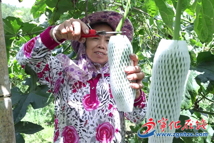 同样,在水茜镇棠地村的丝瓜种植基地内,一根根青翠欲滴的台湾肉丝瓜悬挂在藤蔓上,瓜农们穿梭在藤蔓间,一边给丝瓜套袋保护,一边采摘成熟丝瓜,随后快速打包装箱,运往外地。