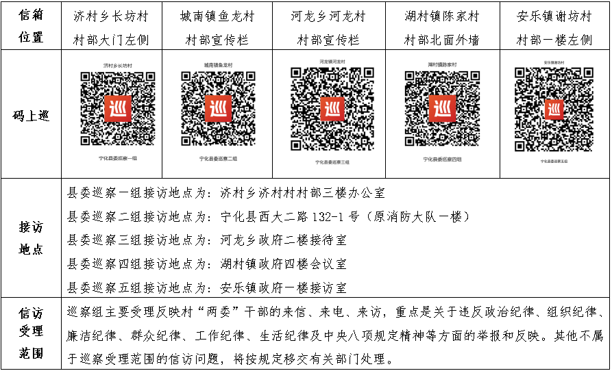 根据县委巡察工作部署要求,从10月20日开始,县委巡察组对济村乡长坊村、城南镇鱼龙村、河龙乡河龙村、湖村镇陈家村、安乐镇谢坊村等5个重点村开展巡察“回头看”,巡察时间为7天左右,目前5个巡察组已进驻巡察。